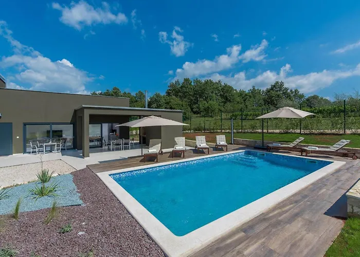 Domaćinstvo prijateljsko prema kućnim ljubimcima u Središnjoj Istri s vanjskim bazenom smješteno je na oko 10 minuta vožnje od Trke na prstenac i 10 minuta vožnje od crkve Sv. Nikole. Vila s 4 spavaće sobe opremljena je televizijom.